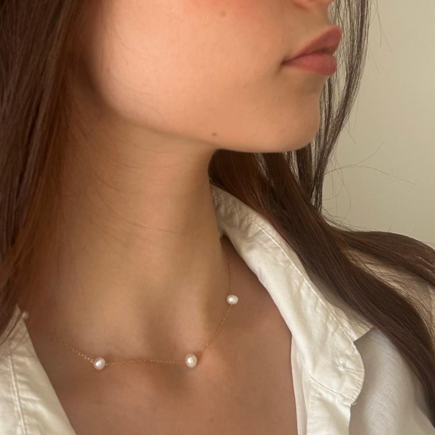 שרשרת פנינים עדינה בעיצוב מינימליסטי ואלגנטי Lina